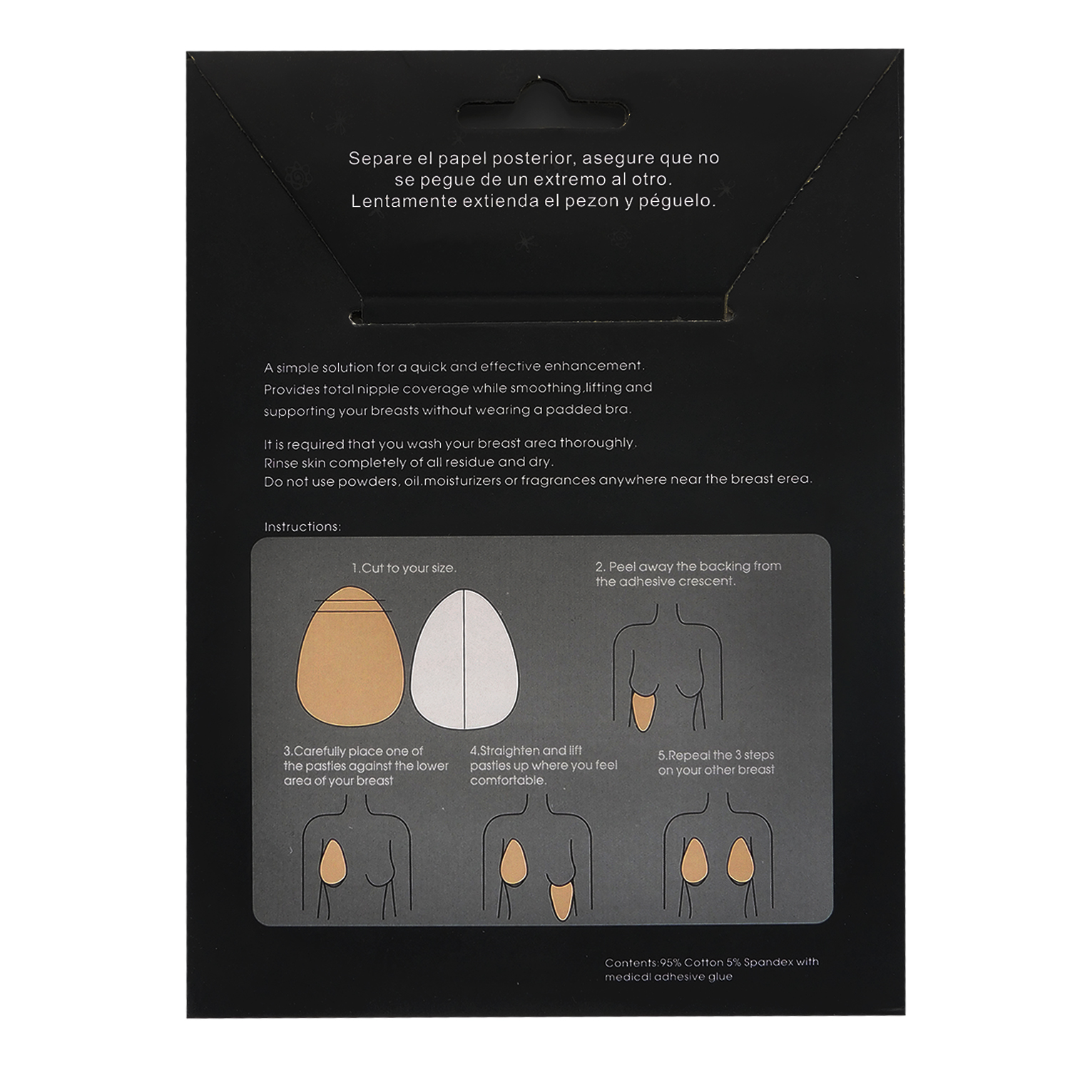 Levantador busto adhesivo invisible. Moldea y realza el busto sin brasier, ideal para escotes y prendas sin tirantes.
