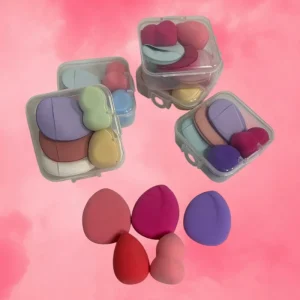 Estuche compacto con mini esponjas diseñadas para la aplicación precisa de corrector, ideal para retocar y difuminar productos líquidos o cremosos en áreas específicas del rostro. Perfecto para llevar en el bolso y usar en cualquier momento.