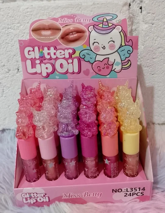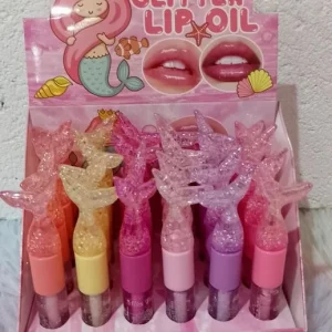 Brillo labial con diseño de cola de sirena o unicornio, que añade un toque mágico y brillante a tus labios, con un acabado suave y colorido.