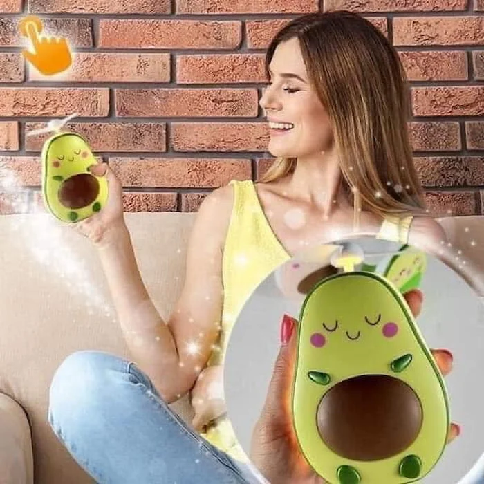 Mini fan de aguacate, un ventilador portátil y divertido con diseño de aguacate. Ideal para mantenerte fresco en días calurosos, compacto y fácil de llevar a cualquier lugar. ¡Una forma fresca y adorable de disfrutar el verano!