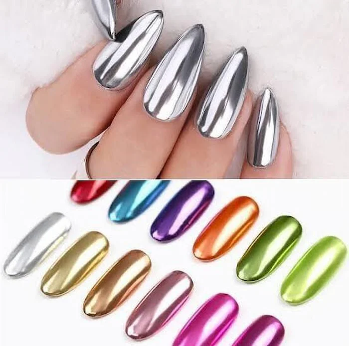 Esmalte efecto espejo tamaño chico, incluye 12 piezas en diferentes colores. Brillo intenso y acabado moderno.