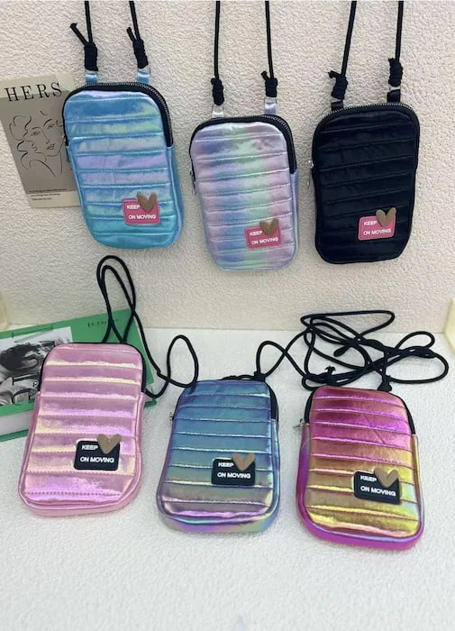 Porta celular súper lindo, disponible en varios colores metálico tornasol. Práctico, duradero y de excelente calidad, ideal para proteger y llevar tu teléfono con estilo. 📱✨