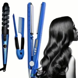 Set de alisado y rizado con tecnología nano titanium: incluye plancha, rizadora y peine . Calentamiento ultra rápido hasta 450°F, placas anchas para un alisado 40% más rápido. Ideal para alisar, rizar y ondular con facilidad y precisión.