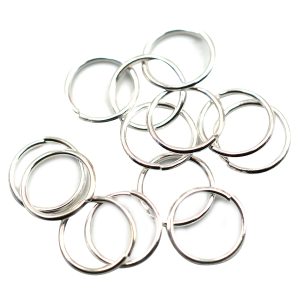 Paquete de 250 gramos de argollas metálicas color plata. Conectores resistentes para joyería y bisutería artesanal.