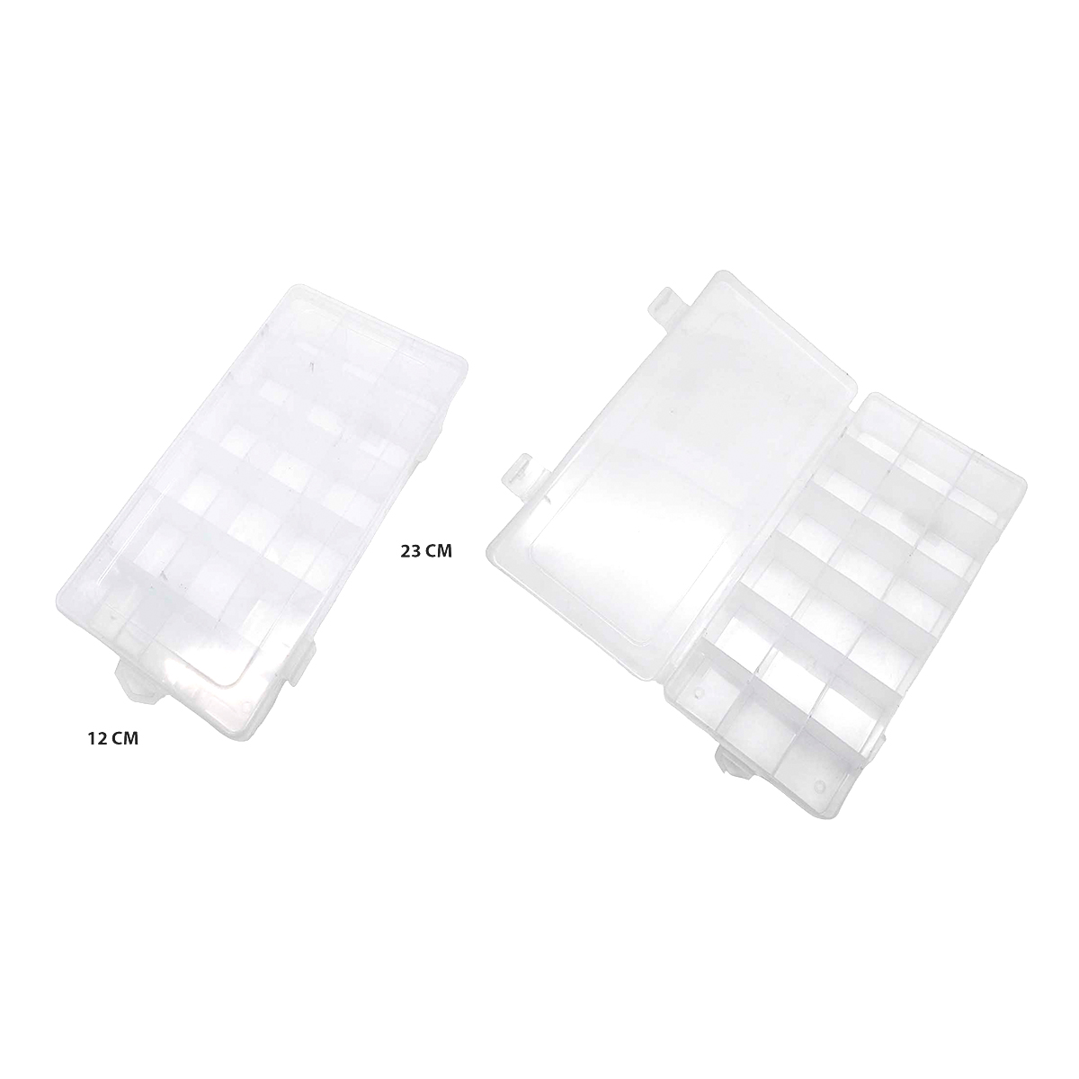 Caja plástica organizadora con 18 compartimientos. Ideal para cuentas, dijes, broches y todo tipo de artículos para bisutería y bricolaje.