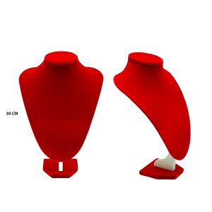 Exhibidor tipo busto para collar grande, recubierto de terciopelo, ideal para joyerías o exhibiciones artesanales.