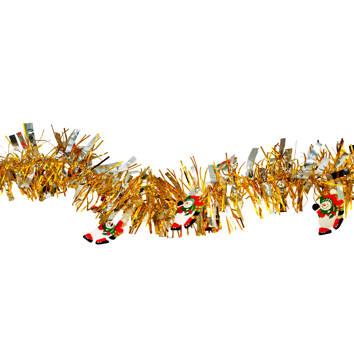 Escarcha navideña metálica de 2 metros decorada con muñecos de nieve, ideal para interiores.