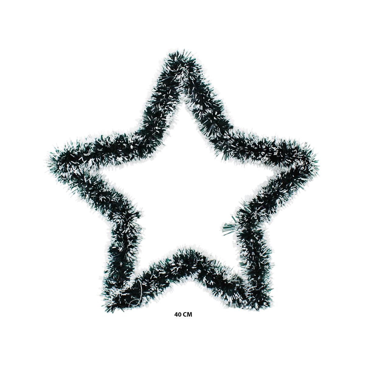 Estrella navideña de escarcha decorativa. Ideal para árbol, guirnaldas y arreglos festivos. Ligera, brillante y reutilizable.