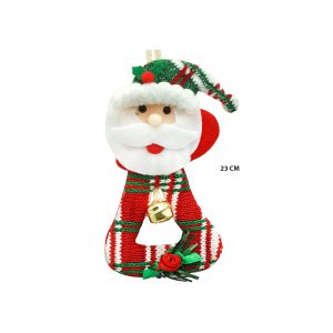 Adorno navideño de tela en forma de campana con figura de Santa Claus, ideal para colgar y decorar.