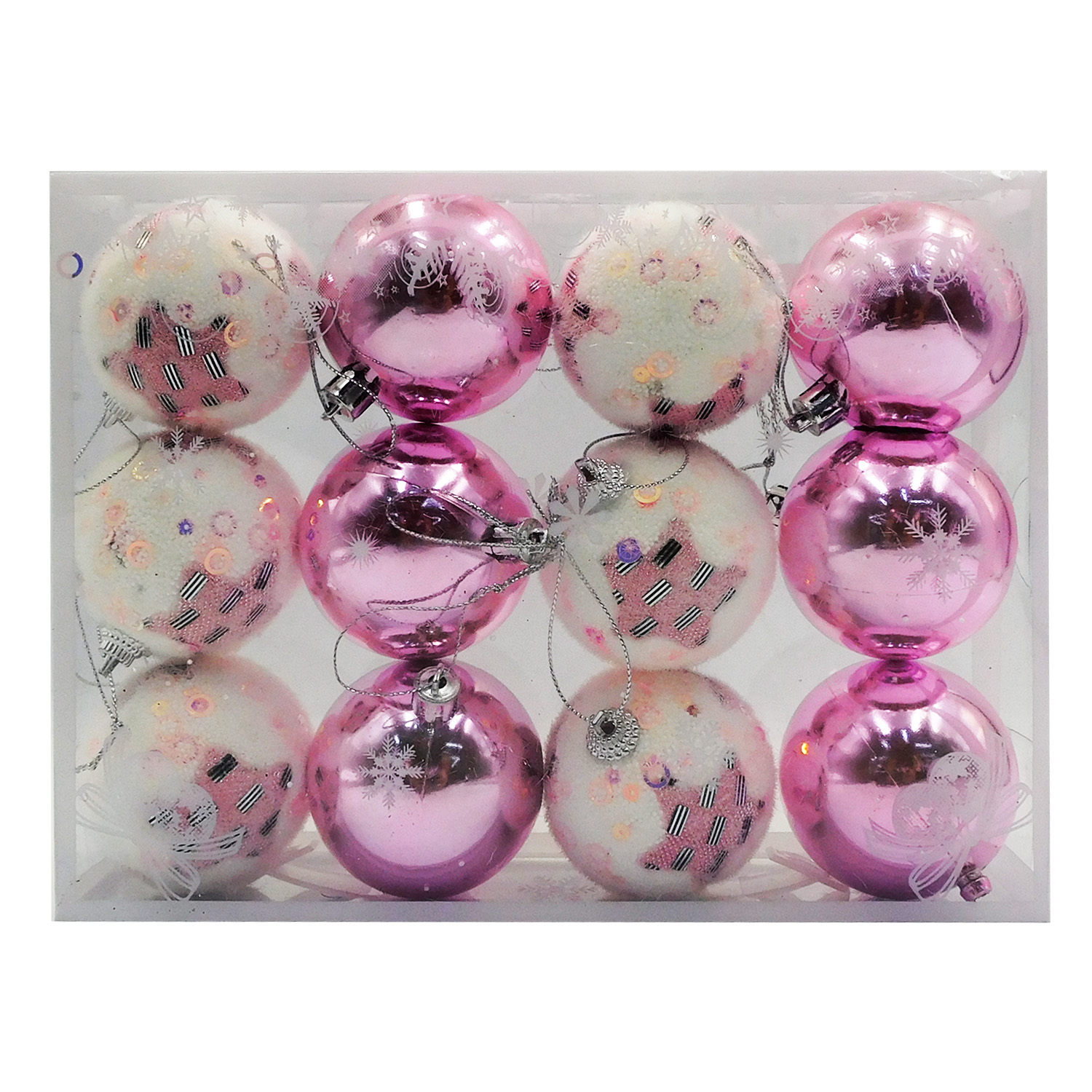Docena de Esferas Tipo Peluche y Metálicas Rosa