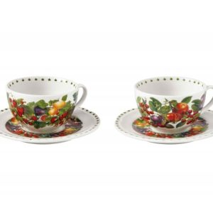 Set de café. Se venden en juegos de dos (dos tazas y dos platos).La porcelana más elegante se vuelve a vestir, con la nueva colección Le Primizie de Brandani. Lleva una naturaleza exuberante a la mesa, triunfa la elegante armonía de las decoraciones luminosas combinadas con los colores cálidos de los cultivos de la naturaleza. Los adornos de frutas enriquecen cada artículo de la colección: los bordes sinuosamente irregulares dan ese toque extra de vivacidad y frescura. ¡Descubra toda la colección Le Primizie, para la mesa y su espacio vital!