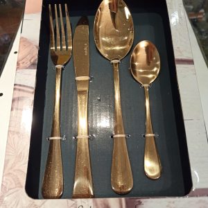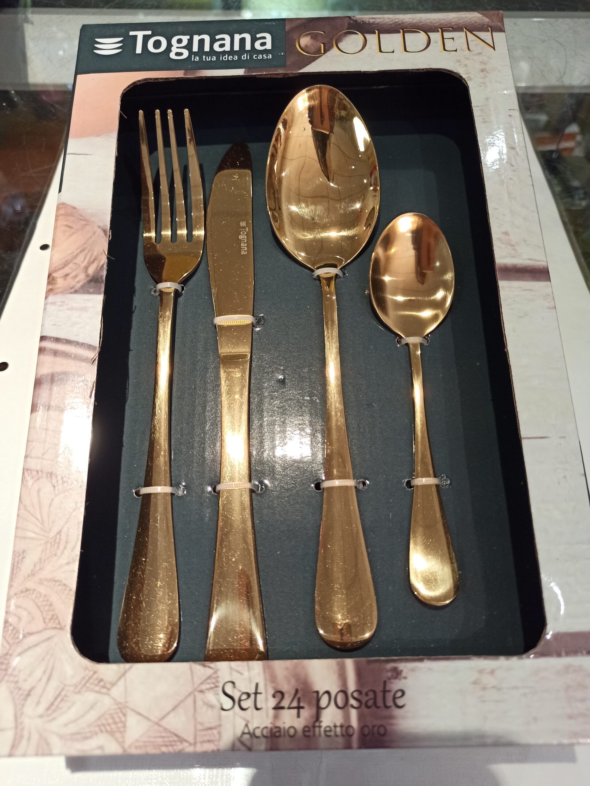 Cubertería de 24 piezas (6 servicios) con efecto oro brillo.