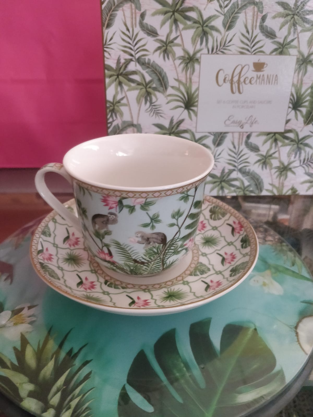 Disponibles cafeteras, pavas y cajas de metal de la misma colección.
