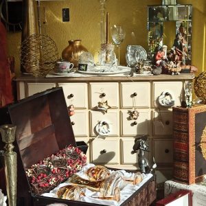 Perchero de madera con 6 ganchos y cajones.