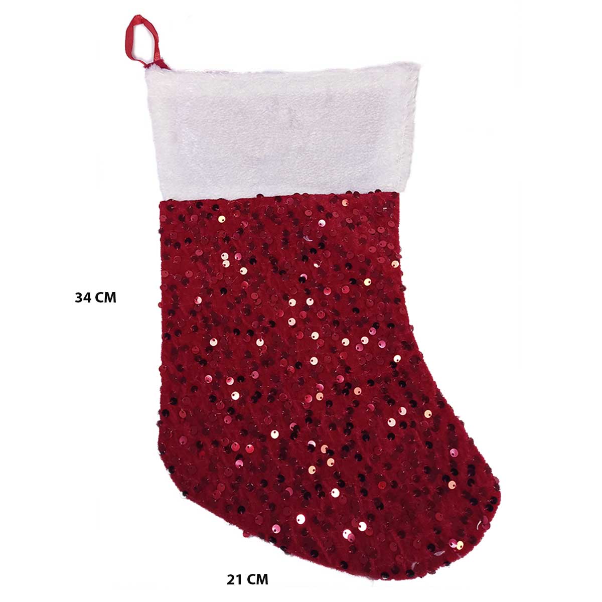 La bota navideña de terciopelo con lentejuelas es un adorno tradicional. Es esencial para la decoración de tu hogar durante la temporada festiva. Con sus medidas de 34 x 21 cm, esta pieza combina la suavidad del terciopelo con el brillo elegante de las lentejuelas. Esto crea un contraste festivo y llamativo que captura la luz.