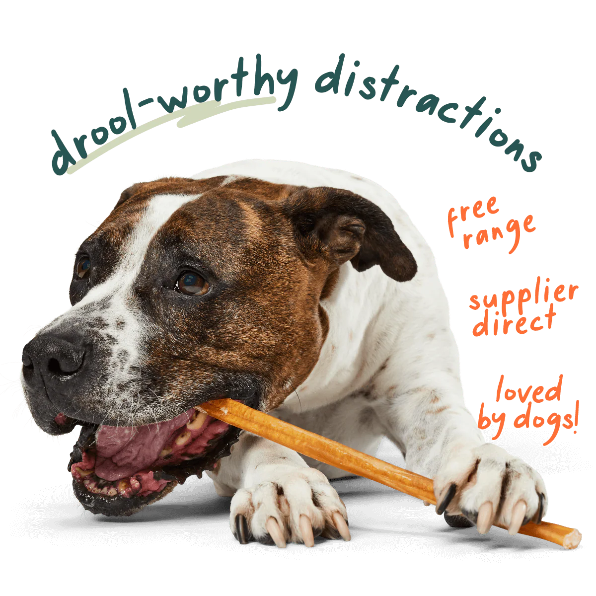 Estos Bully Sticks provienen de ranchos certificados que siguen prácticas agrícolas sostenibles y están verificados éticamente. Solo lo mejor para tu perro y el planeta.