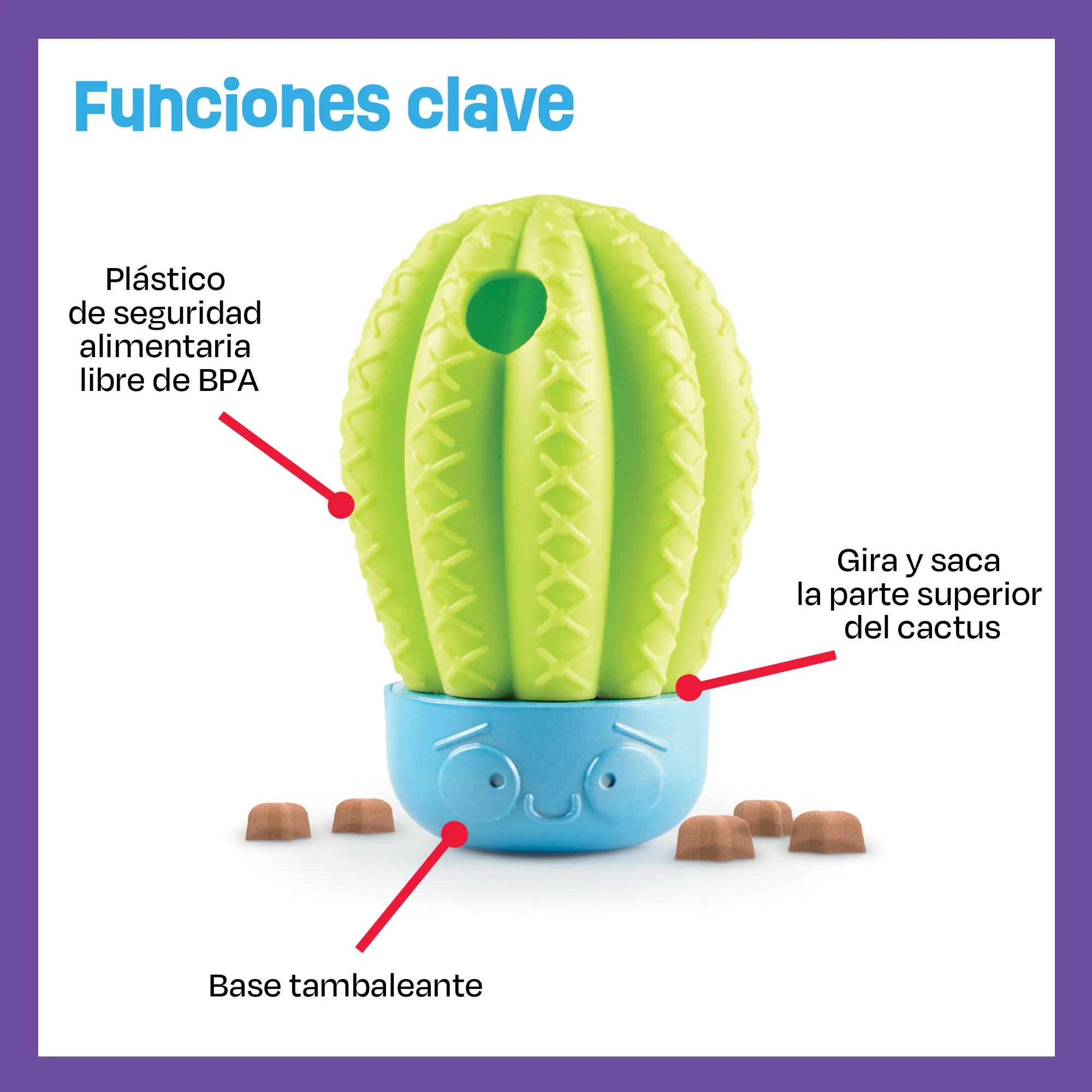 - ¡Agítalo, muévelo, merienda!: Llena este colorido cactus con premios o croquetas, y observa cómo los perros utilizan su ingenio (y patas) para liberar las deliciosas golosinas en su interior, ¡y juegan sus propios juegos caninos!