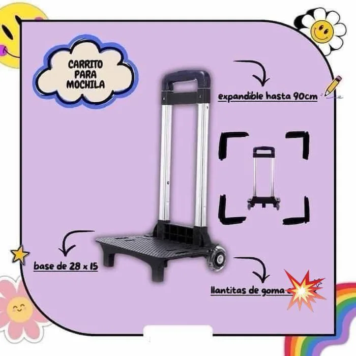 Movilidad Sin Esfuerzo con Carrito Para MochilaPresentamos el Carrito Para Mochila, tu solución definitiva para un transporte conveniente. Diseñado para estudiantes, viajeros y entusiastas del aire libre, este innovador carrito de mochila transforma tus cargas pesadas en una brisa. Con su construcción resistente y diseño ergonómico, ahora puedes llevar tus esenciales sin forzar tu espalda ni tus hombros.Características que Elevan Tu ExperienciaEl Carrito Para Mochila está equipado con una variedad de características para mejorar tus necesidades diarias de transporte. El mango de altura ajustable garantiza comodidad para usuarios de todas las tallas, mientras que las ruedas duraderas ofrecen un movimiento suave a través de diversos terrenos, desde los caminos del campus hasta las aceras urbanas. Su marco ligero facilita la maniobrabilidad, y el diseño plegable permite un almacenamiento compacto cuando no está en uso.