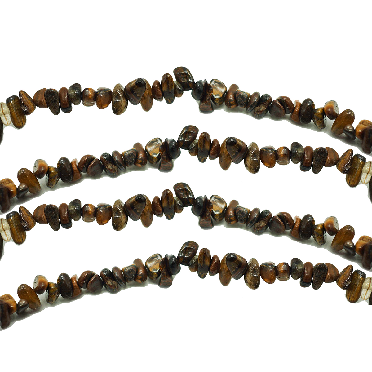 El chip ojo de tigre para bisutería es ideal para quienes buscan incorporar propiedades energéticas en sus diseños, ya que esta piedra semipreciosa es conocida por su poder protector, su capacidad para equilibrar energías y su estética llamativa. El juego de tonos marrón dorado con destellos es lo que hace única a esta piedra, captando la luz de manera especial.