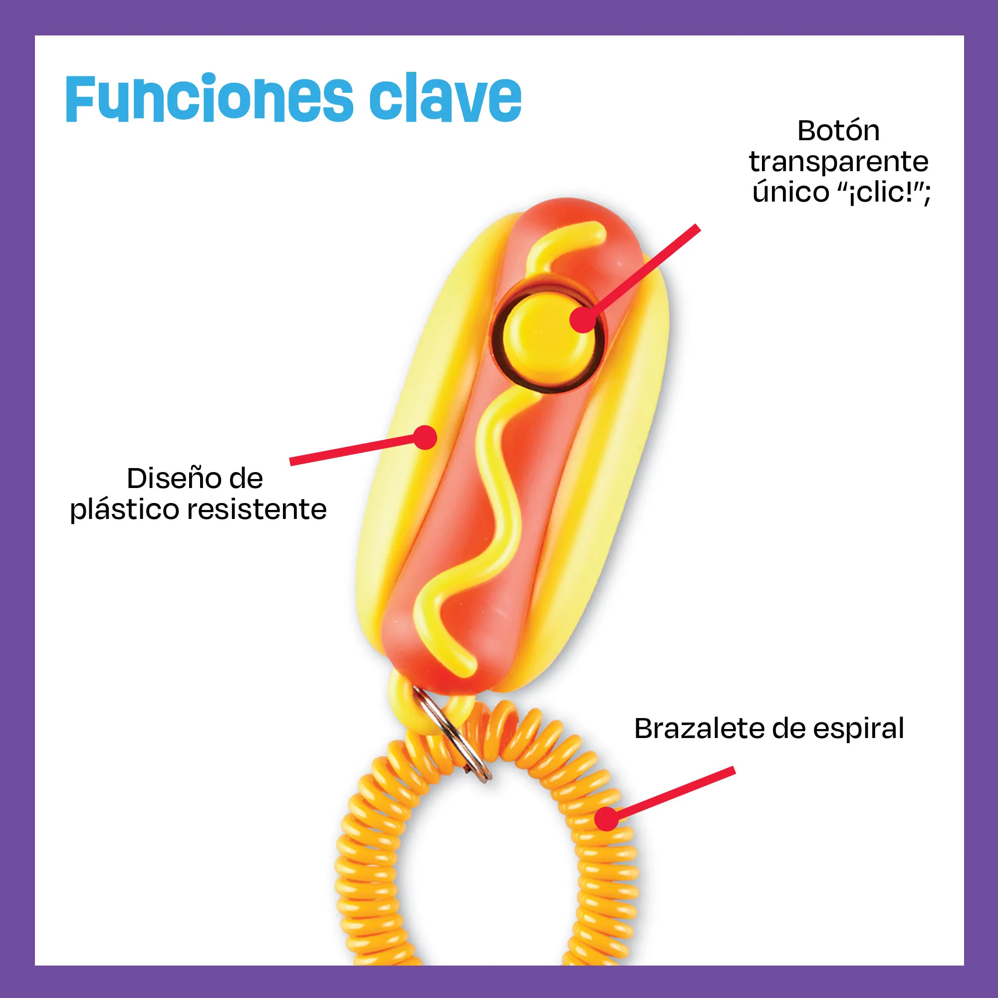 - Clics consistentes en cada ocasión: un único botón confiable «clic» fomenta una comunicación clara con tu cachorro.