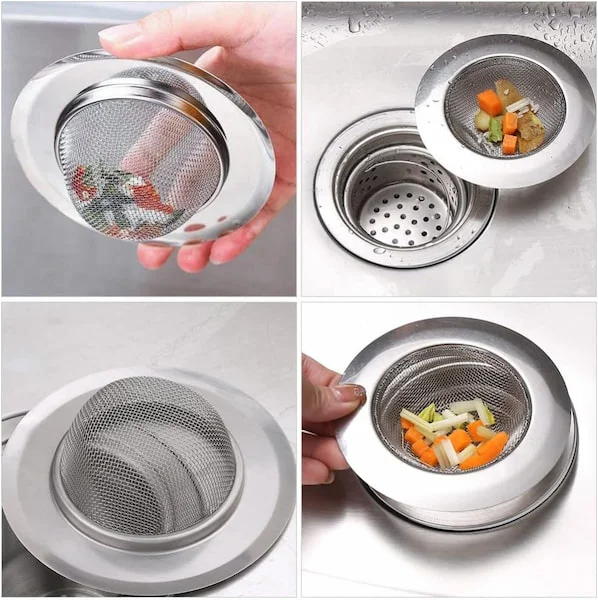 - Diseño Eficiente: Su diseño permite filtrar eficazmente los restos de comida y otros desechos, evitando que se tapen las tuberías del fregadero. Ideal para la cocina y el baño.