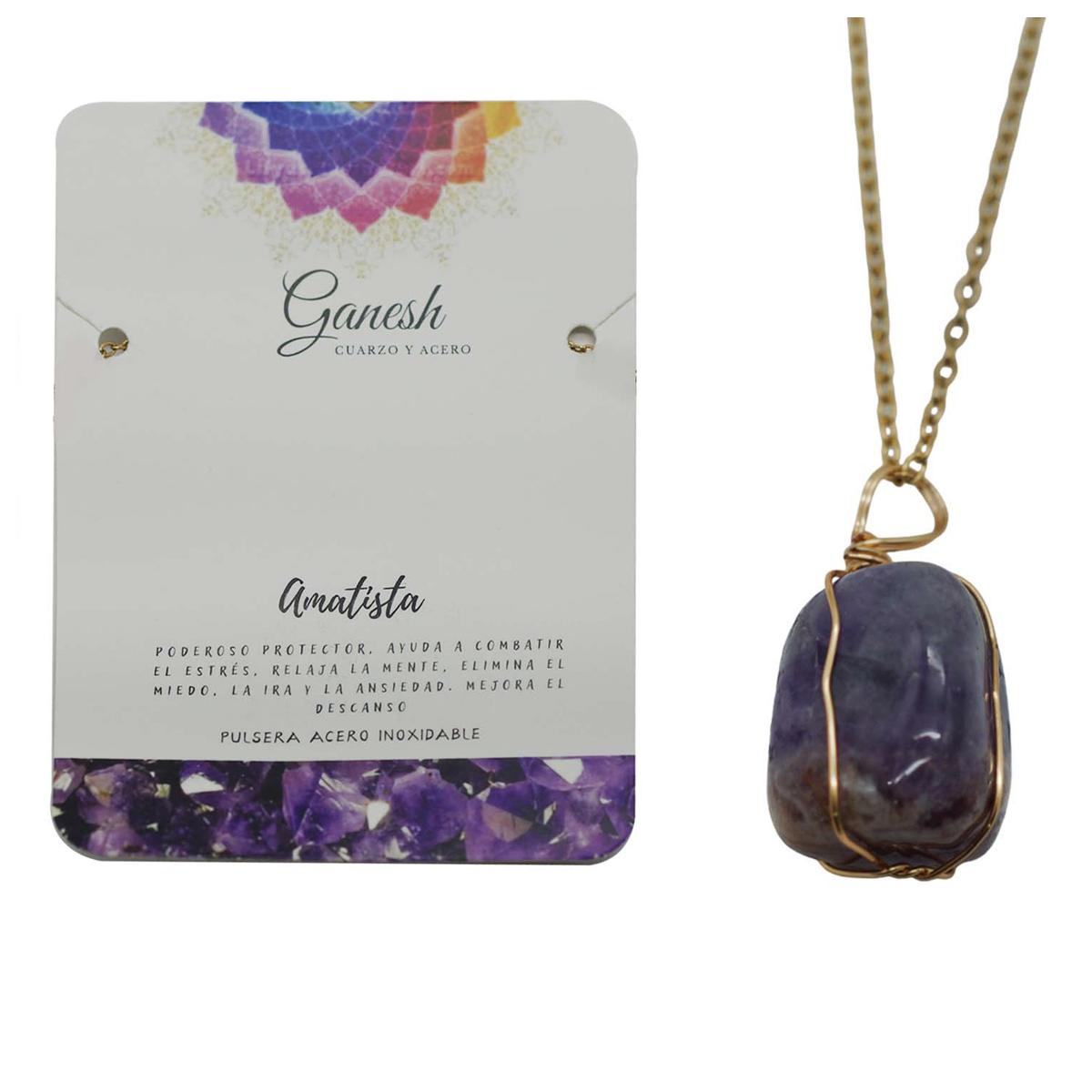 El collar con dije de amatista grande es un accesorio lleno de significado y estilo. Este hermoso collar incluye una cadena de acero inoxidable que resalta por su durabilidad y brillo, acompañada de un dije hecho de amatista natural, piedra reconocida por su belleza y su fuerte conexión espiritual.