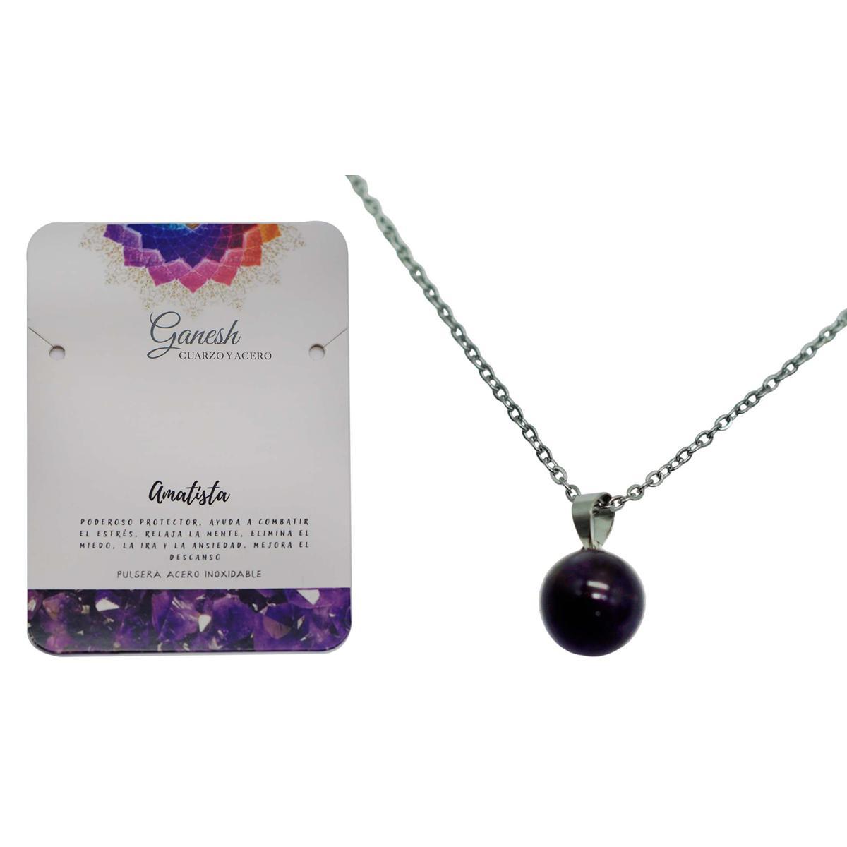 Luce con estilo y energía con este collar con dije de cuarzo en forma de esfera, disponible en distintos tipos de piedras naturales como cuarzo rosa, amatista o cristal. Cada piedra posee propiedades espirituales únicas que te acompañarán día a día. El dije es elegante, pulido y con un diseño que proyecta armonía. Su cadena de acero inoxidable ofrece resistencia, durabilidad y un acabado moderno que se adapta fácilmente a cualquier atuendo. Ideal para regalar o usar como amuleto personal, este collar combina la belleza de la naturaleza con el diseño contemporáneo. Un accesorio versátil que aporta un toque especial y lleno de significado a tu look.