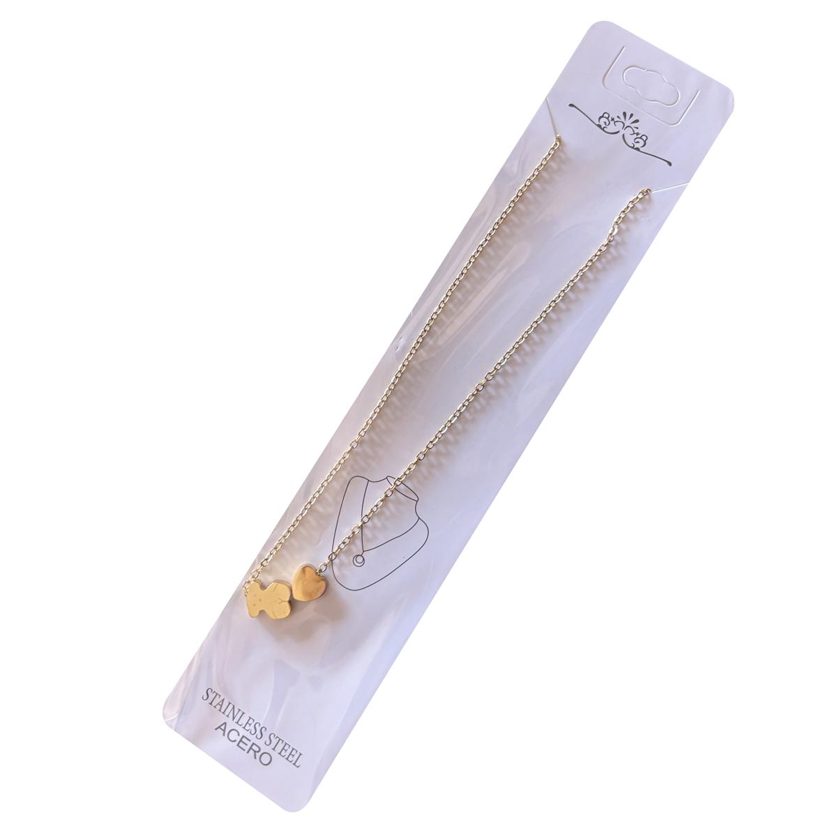 Este collar de fantasía color dorado es una pieza versátil y encantadora, diseñada para realzar tu estilo con un toque moderno y femenino. Fabricado en acero inoxidable, este collar destaca por su durabilidad, brillo y resistencia a la corrosión, lo que lo convierte en una excelente opción para el uso diario o para complementar tus atuendos más especiales.