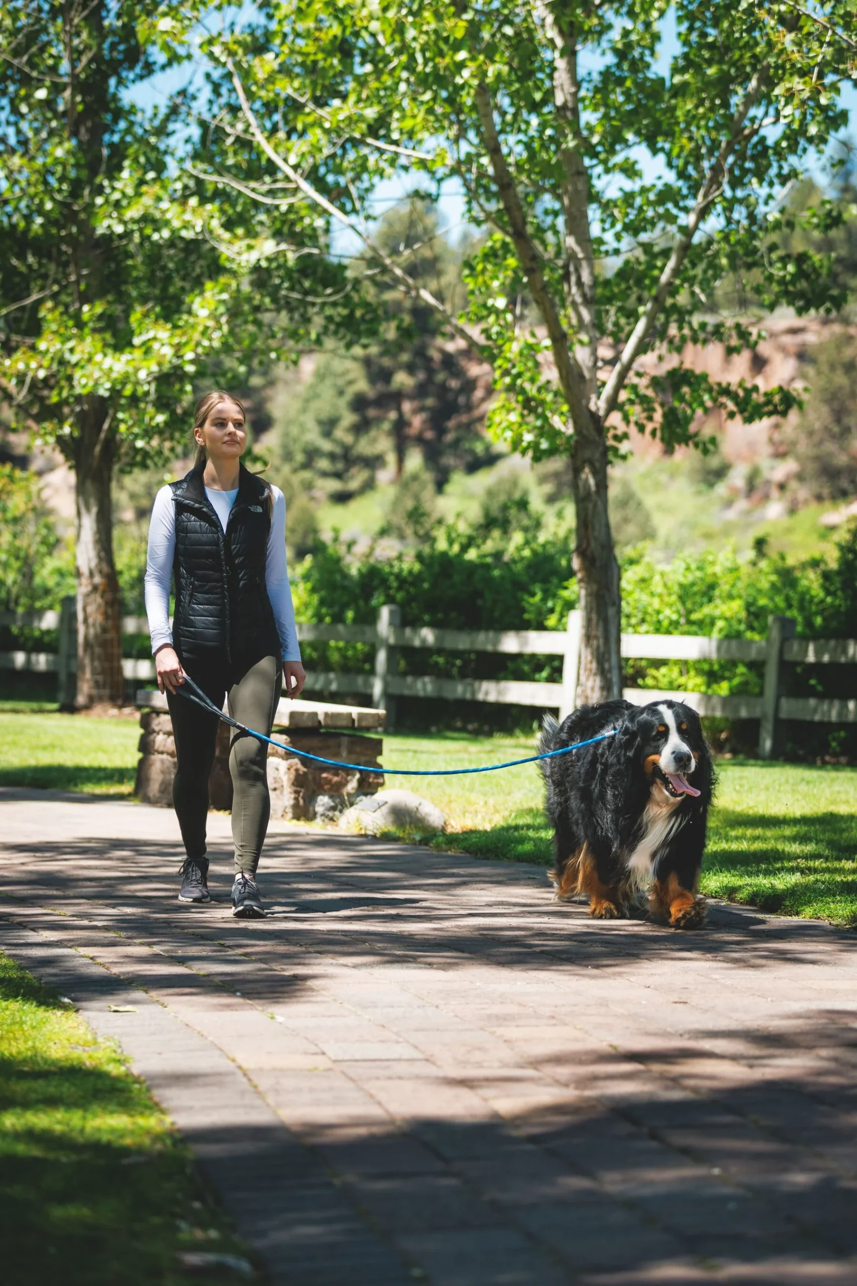 - Resistencia y Durabilidad: Fabricada con cuerda de escalada de polipropileno, esta correa es resistente al uso diario intensivo, pero también suave y cómoda para el usuario. Los detalles reflectantes en la cuerda mejoran la visibilidad durante paseos nocturnos, añadiendo una capa extra de seguridad.