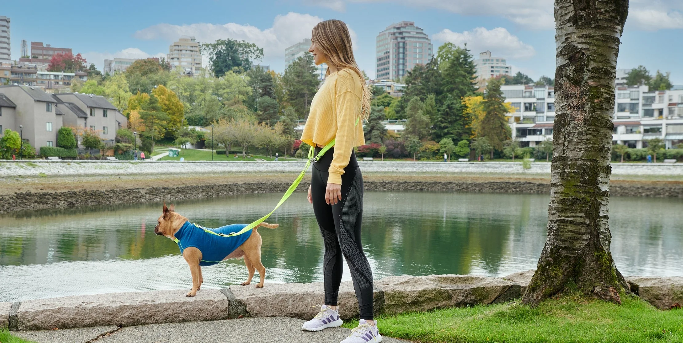 Tanto en la ciudad como en los paseos, la correa Primary Active es un complemento versátil para cualquier salida.