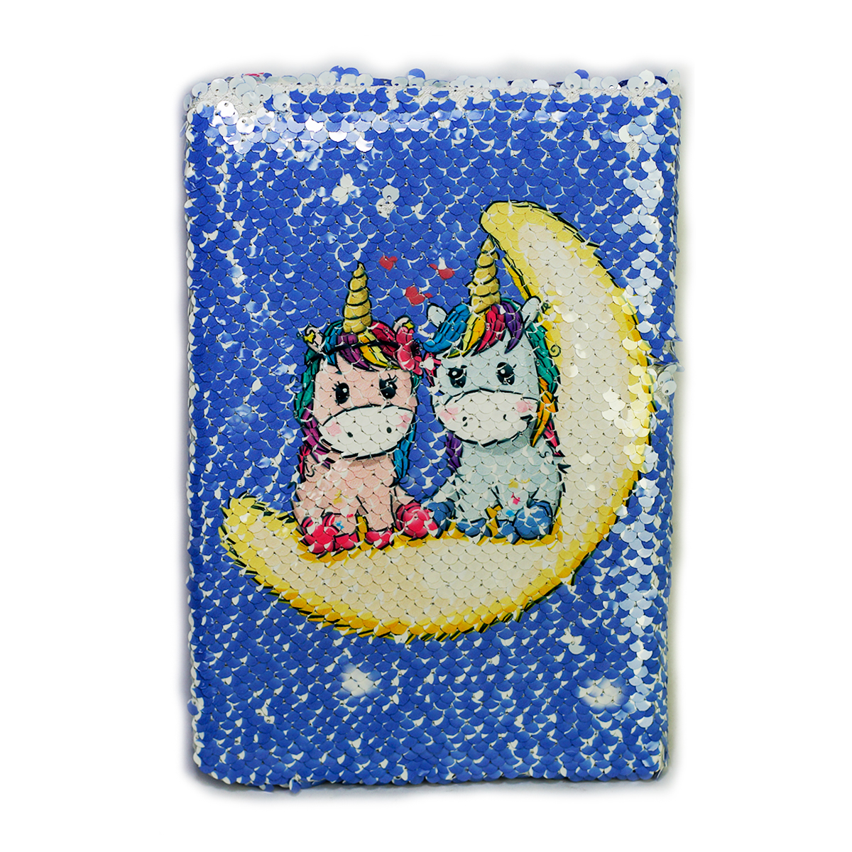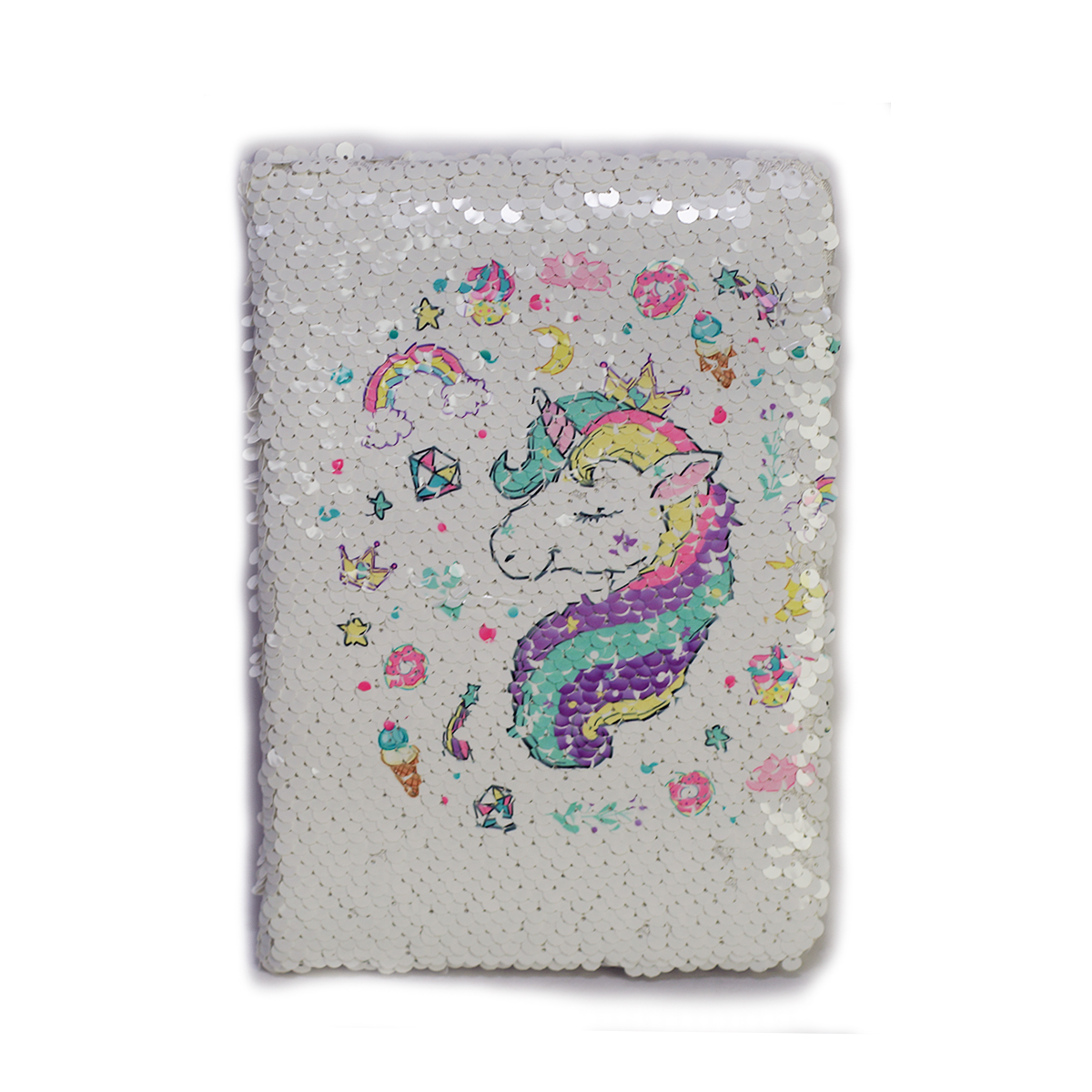 Cuaderno forma francesa en diferentes diseños de unicornio, forrado con lentejuela que al