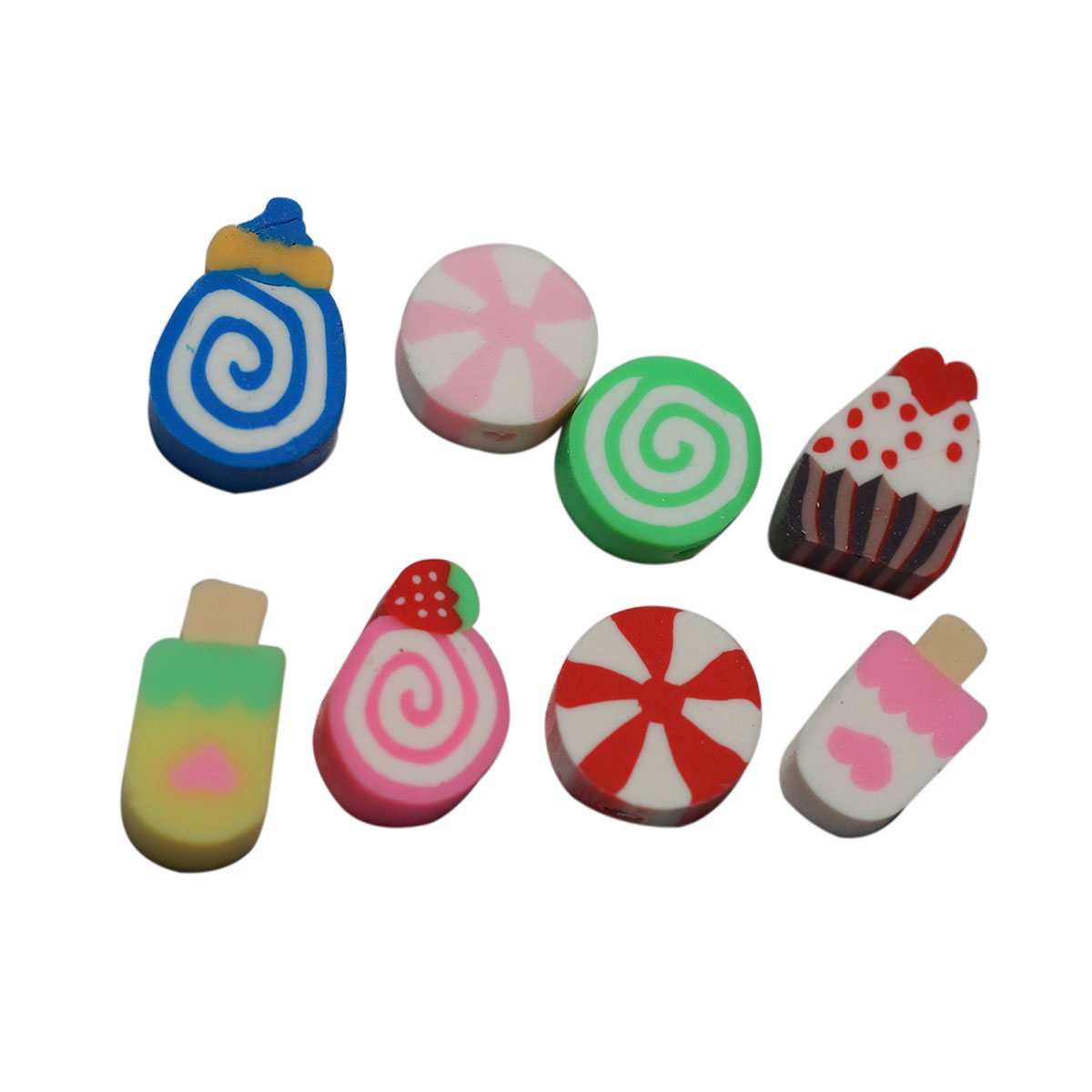 Si buscas materiales originales, coloridos y versátiles, estas cuentas de fimo en forma de dulces y postres son la elección ideal para dar un toque creativo a tus proyectos.