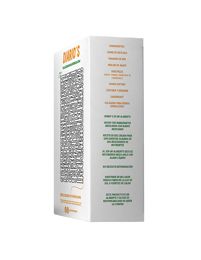 Diario’s puede usarse como complemento para agregar a la alimentación diaria de tu perro o incluso como alimento principal, siempre añadiendo algún líquido, preferentemente caldos o consomés de origen animal para potenciar su sabor y aportar hidratación adicional.