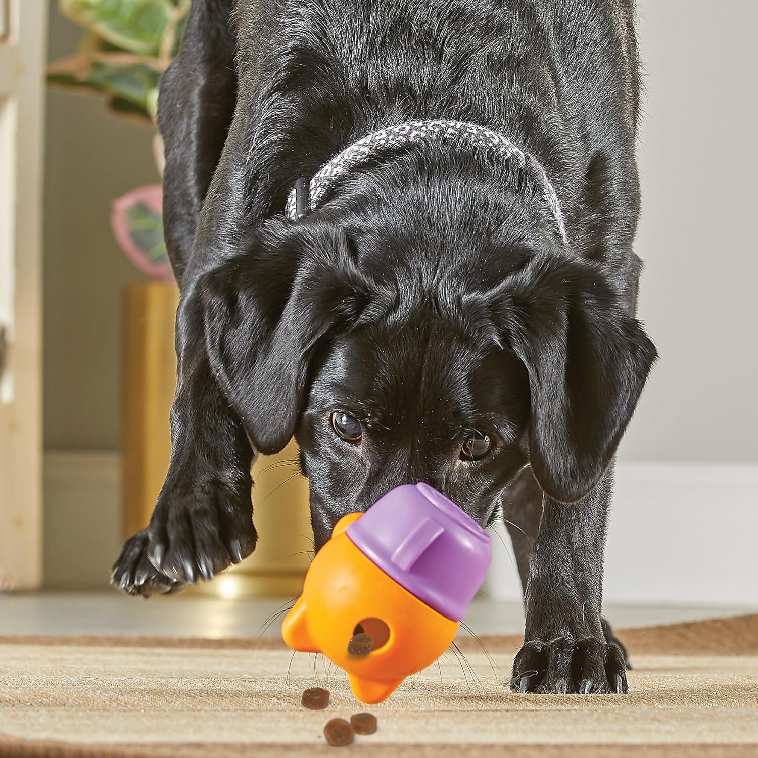 - Wiggle, Wobble y Snack: Llena este juguete con premios o croquetas y observa cómo tu mascota lo empuja y lo rueda hasta conseguir las golosinas escondidas.
