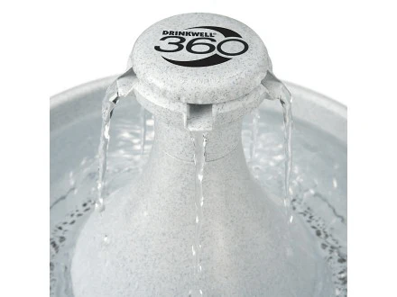 Desarrollado por un Veterinario, la Fuente de Agua Drinkwell® 360 provee 3.8 litros de agua fresca, oxigenada y filtrada para tu perro. Está fuente hace que tu perro tome más agua y continuamente la aérea con oxígeno siendo más palatable. Un filtro de carbono remueve el mal sabor y olor que pueda contener la fuente de agua de tu localidad, dandole la mejor forma de mantenerse hidratado y sano.