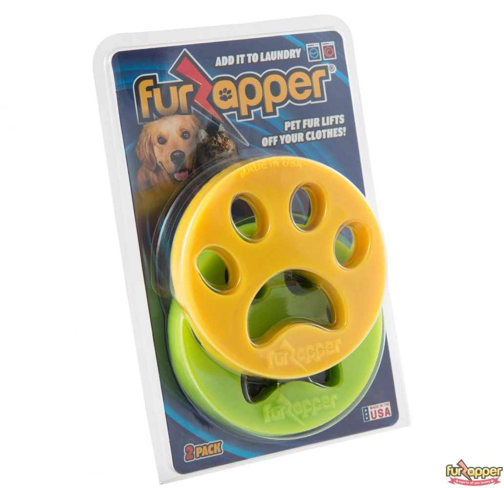 Di hola a FurZapper, el eliminador de pelos patentado para tu ropa. El mejor y único eliminador de pelos de mascotas para su lavandería. Un paquete de 2 es ideal para hogares con muchos pelos (2 o más mascotas que mudan). Use ambos en la lavadora y luego ambos en la secadora (funciona mejor en la secadora). Los FurZappers duran más de 100 usos y más ciclos de lavado y secado, y están garantizados para arrancar suavemente el pelo del perro o del gato de su ropa. Es mejor que un rodillo para pelusas, hojas para secadora o cualquier receta casera que pueda encontrar en Internet.