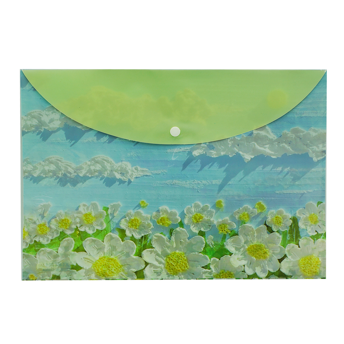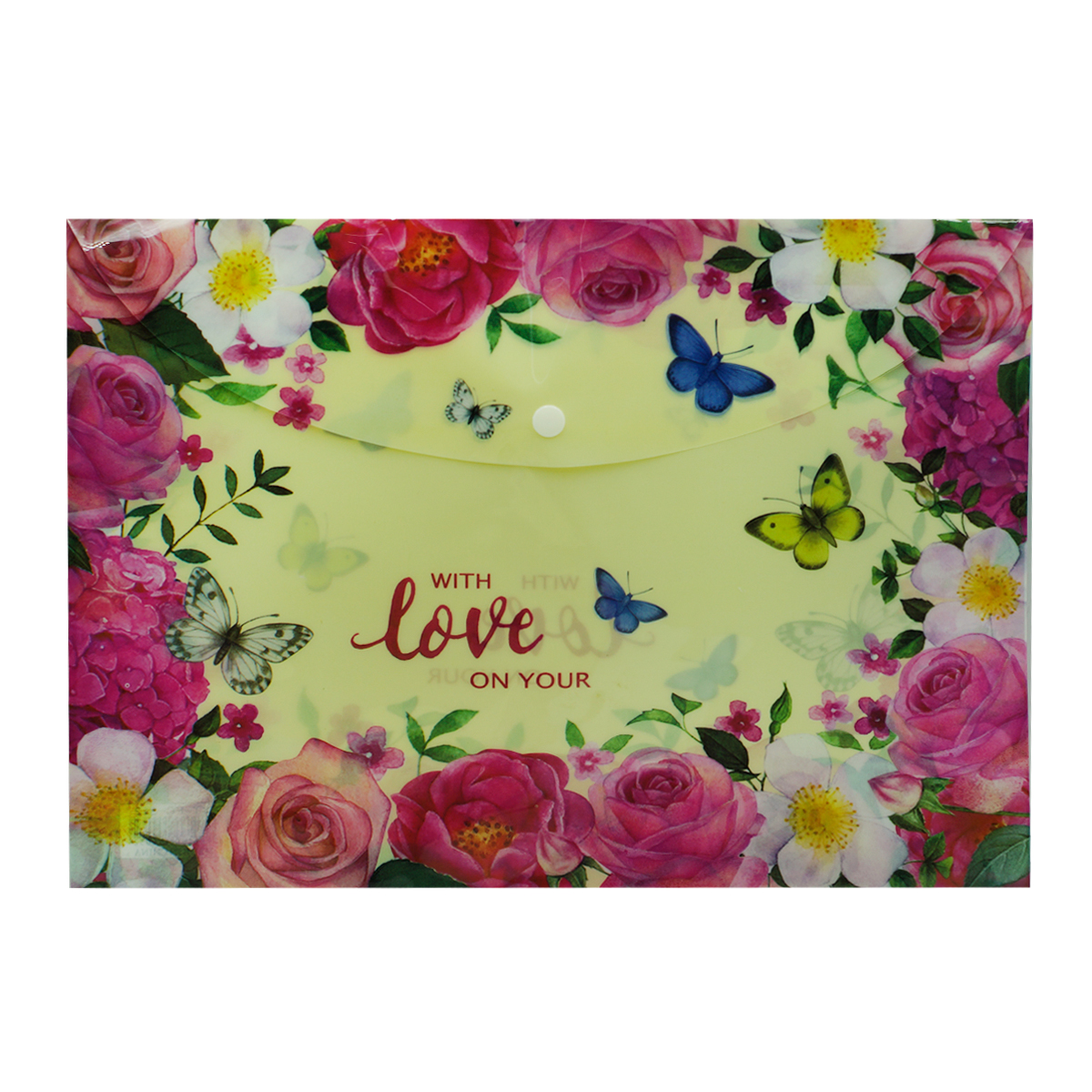 Este folder de plástico en varios diseños cuenta con un práctico sistema de cierre (ya sea tipo botón, broche o ziploc, dependiendo del modelo), que mantiene los documentos seguros en su interior y evita que se salgan o se dañen. También puede incluir divisiones internas o bolsillos según el modelo, lo que lo hace aún más versátil.