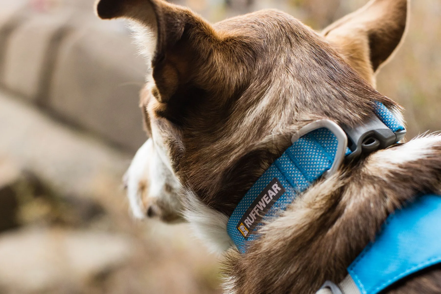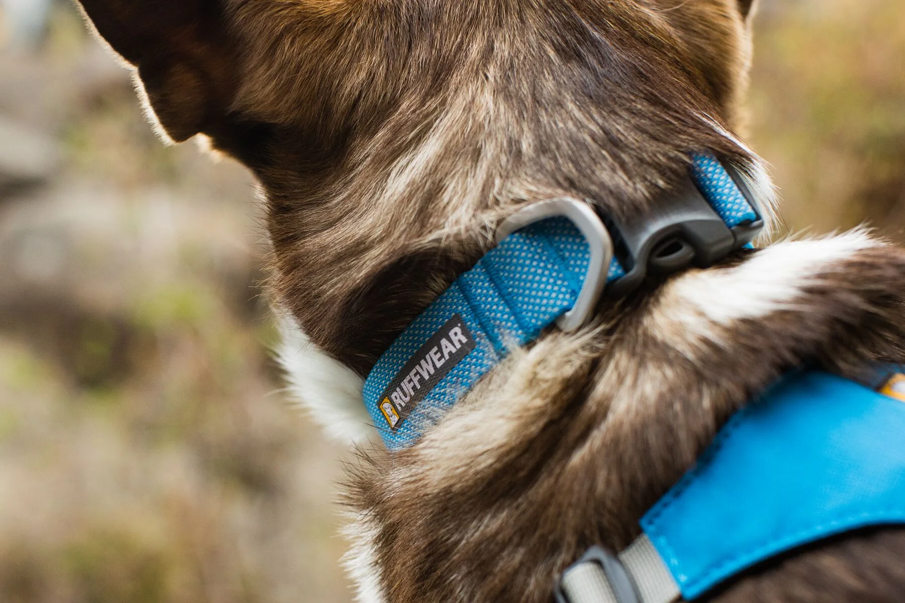 Cuenta con las características propias de los collares Ruffwear: una argolla en D de aluminio, un punto de enganche para la placa de identificación separado del anillo para la correa y un silenciador de silicona para la placa.