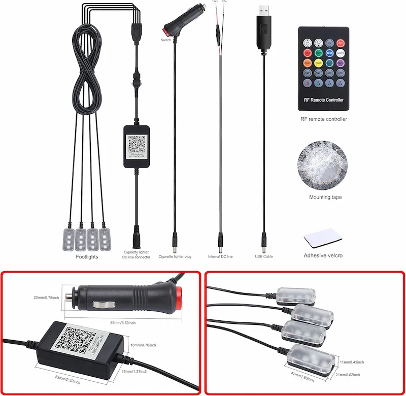 💡 Control Remoto: Ajusta el brillo, cambia de color y selecciona efectos de iluminación desde la comodidad de tu asiento.