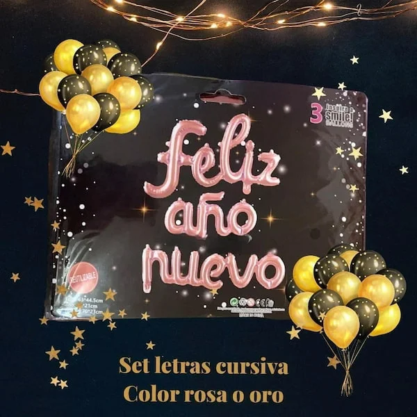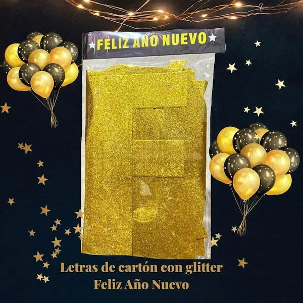Nuestros letreros de «Feliz Año Nuevo» vienen en diferentes estilos que se adaptan a cualquier gusto y decoración. Desde elegantes letras doradas que brillan con sofisticación hasta coloridos diseños que irradian alegría, encontrarás el letrero perfecto para cada ocasión. Algunos modelos incluyen detalles festivos como copas de champán, estrellas brillantes y fuegos artificiales, añadiendo un toque extra de emoción a tus celebraciones.