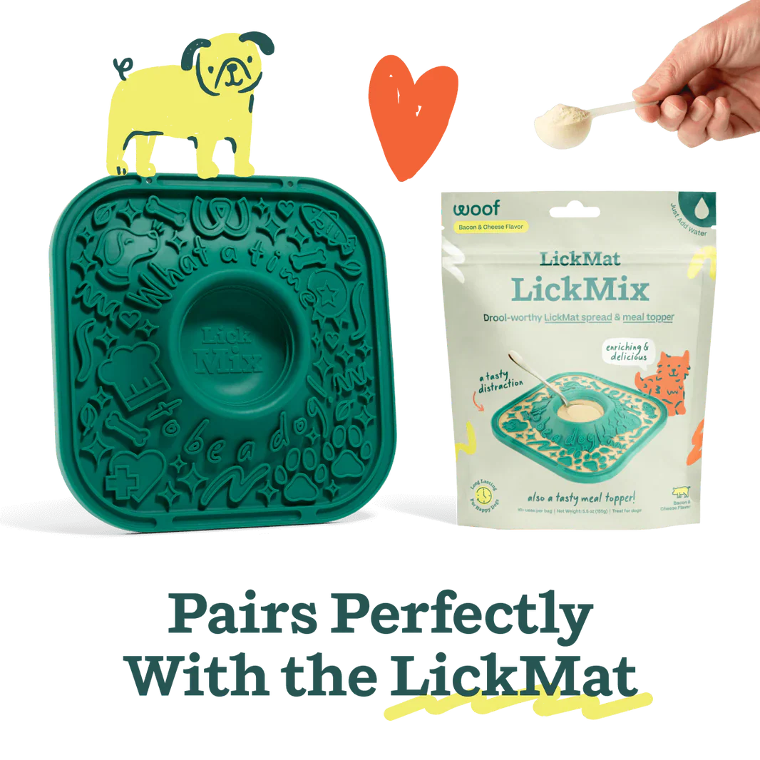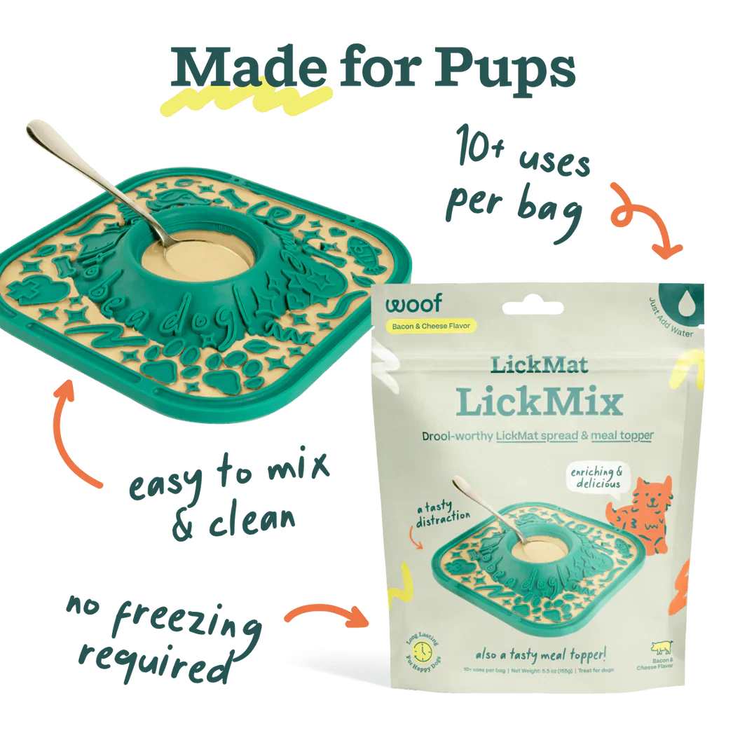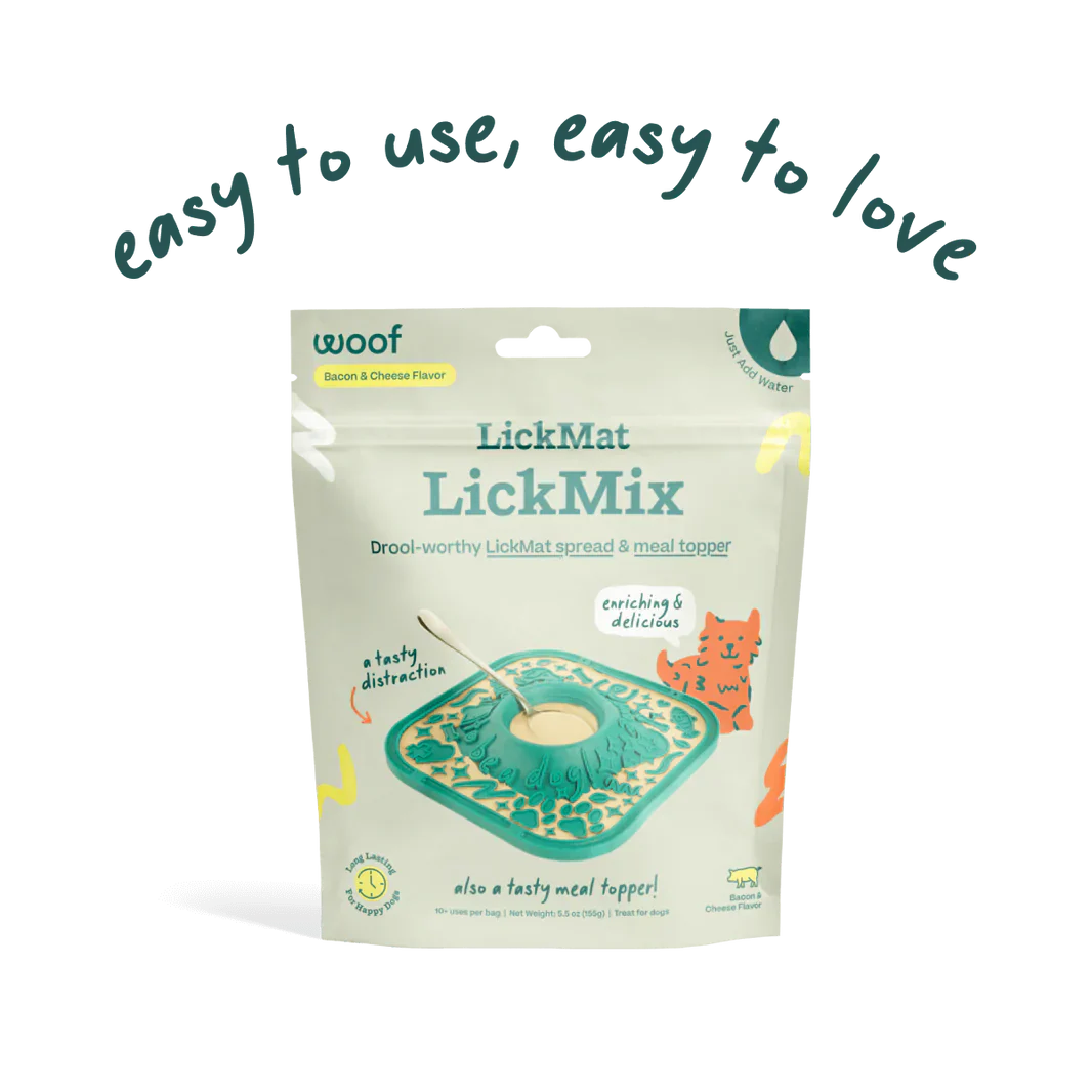 Convierte cualquier momento en una experiencia deliciosa y calmante con el LickMix Sabor Tocino & Queso de Woof. Esta mezcla en polvo se activa al añadir agua, creando una textura tipo gelatina que se adhiere fácilmente a los LickMats sin necesidad de congelar. ¡Ideal para perros ansiosos o simplemente como un premio sabroso y diferente!
