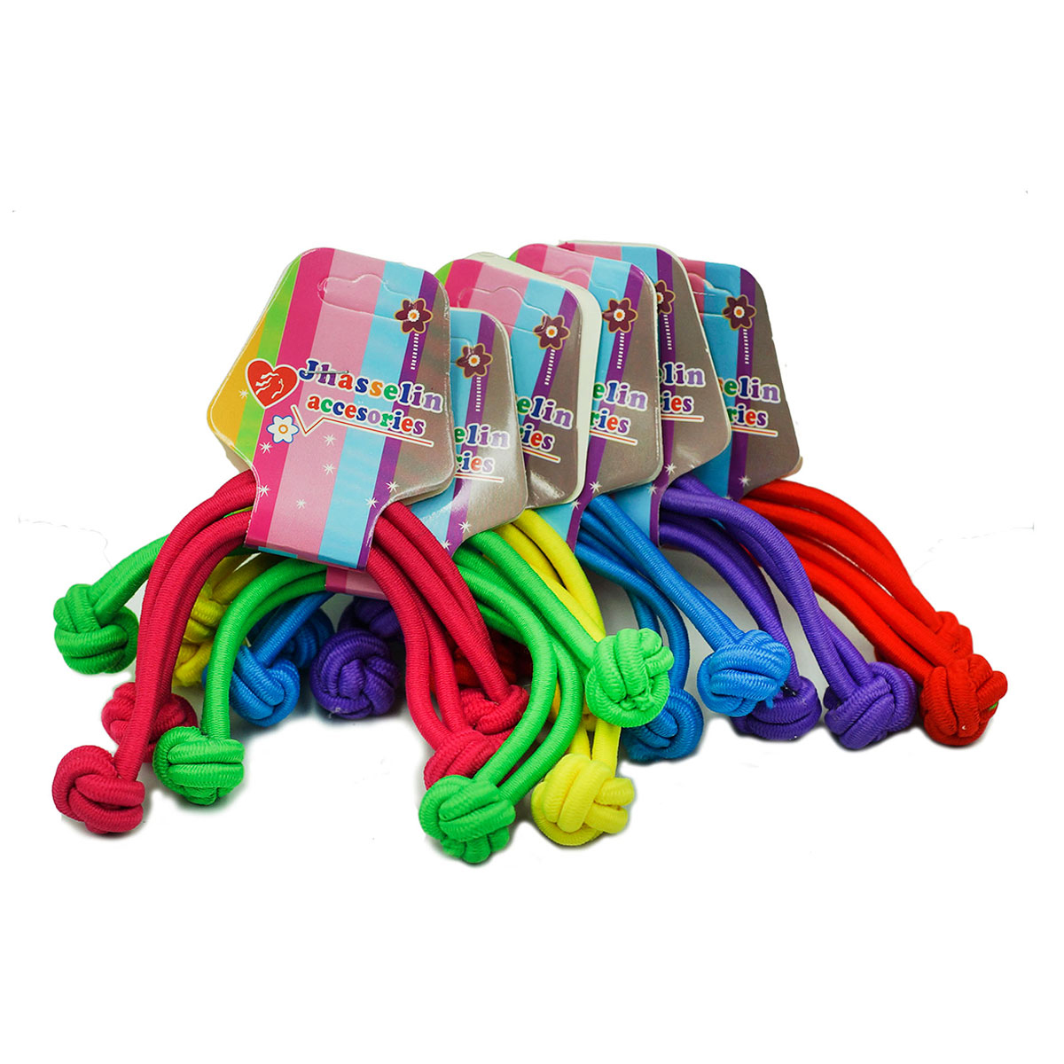 Estas ligas están disponibles en colores surtidos, lo que permite combinarlas con distintos estilos y outfits, así como coordinar con uniformes escolares o temáticas de eventos. Su diseño de nudo garantiza que la liga se mantenga firme durante todo el día, asegurando que el cabello quede sujeto sin necesidad de ajustes constantes.