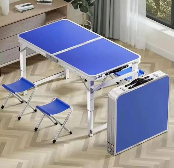 La mesa plegable es una solución ideal para quienes buscan funcionalidad y comodidad. Este diseño innovador incluye 4 bancos, lo que la convierte en la opción perfecta para reuniones familiares, picnics o cualquier evento al aire libre.