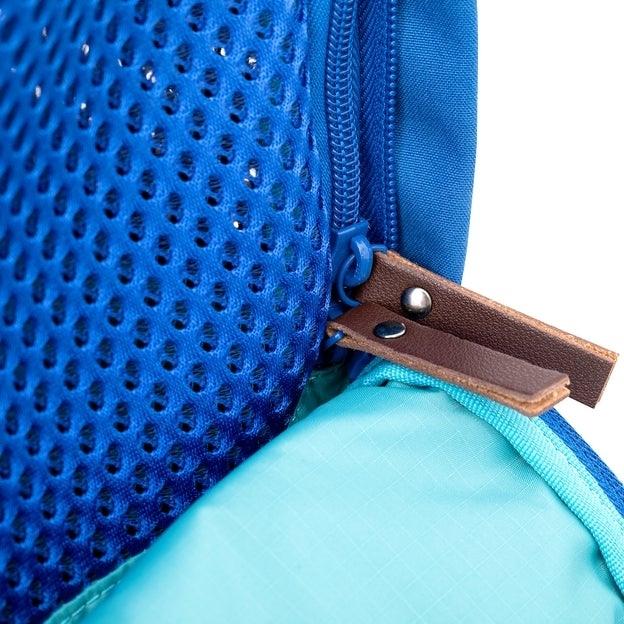 - La tela de la parte delantera de la bolsa también puede enrollarse y guardarse perfectamente en un bolsillo oculto para revelar la ventana de malla transpirable que hay debajo.