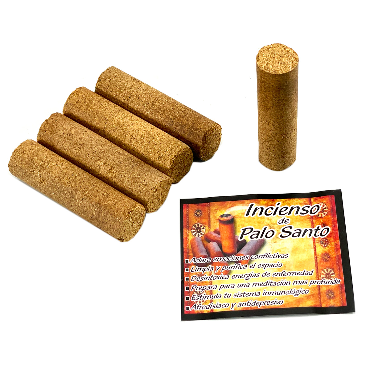 Palo Santo comprimido para incienso natural en paquete de 6 piezasEl palo santo comprimido para incienso ofrece una forma práctica y moderna de disfrutar el aroma purificador del palo santo tradicional. Cada paquete incluye 6 piezas en forma de pequeños corchos compactos de 6 cm de largo, elaborados a partir de polvo natural de palo santo prensado. Este formato conserva la esencia original del árbol sagrado, utilizado ancestralmente por sus propiedades espirituales, energéticas y aromáticas.