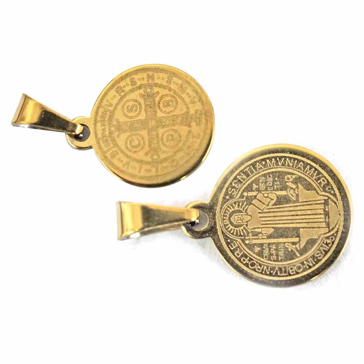 Este paquete de 100 piezas de Dije de San Benito para bisutería dorado es una adquisición imprescindible para cualquier amante de la joyería. Cada dije está meticulosamente diseñado con detalles intrincados que representan la medalla de San Benito, un símbolo de protección y bendición. El acabado dorado de alta calidad de cada pieza aporta un brillo sofisticado que resalta la belleza de los detalles.