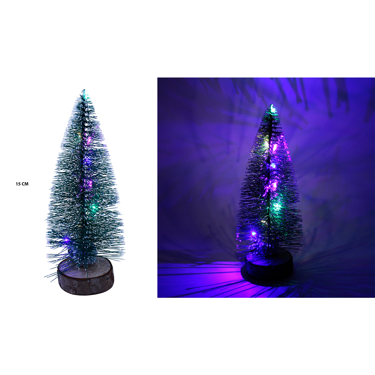 El pino navideño de 15cm con luz es muy fácil de colocar y combinar con otros elementos decorativos, como esferas, figuras o guirnaldas. Puedes usarlo en solitario para un toque sutil o integrarlo en un conjunto decorativo para crear un ambiente más completo. Su diseño lo hace adecuado tanto para estilos clásicos como modernos, adaptándose a cualquier entorno.