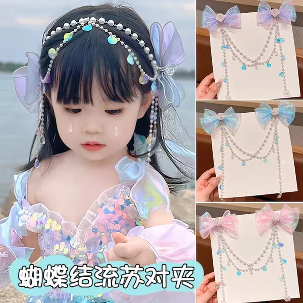 Haz que tu pequeña luzca como una verdadera princesa del mar con nuestras encantadoras Pinzas Sirena. Diseñadas con un toque mágico y elegante, estos accesorios para el cabello están decorados con un delicado lazo adornado con perlas, que evoca el brillo del océano y la majestuosidad de las sirenas.