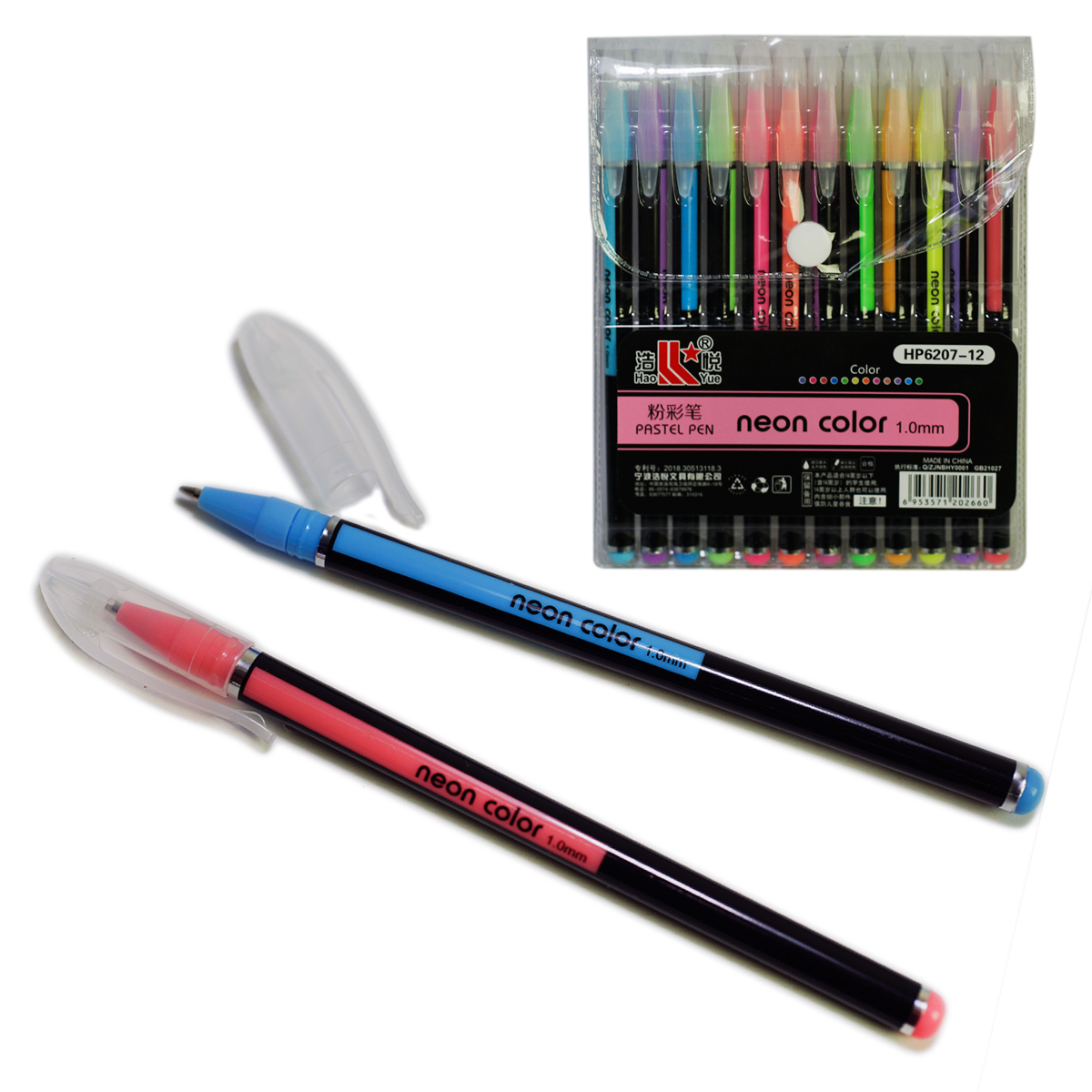 Plumas de colores pastel neón en diferentes colores, paquete con doce bolígrafos en diferentes colores,