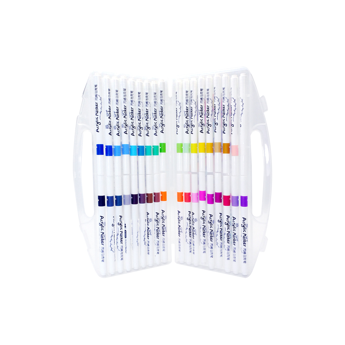 El set de plumones de acrílico con punta pincel – set de 36 colores se presenta en un práctico estuche que mantiene cada pieza ordenada y protegida, lo cual facilita su almacenamiento y transporte. La variedad de colores proporciona una rica paleta para mezclas, degradados y detalles que permiten dar vida a cualquier creación.